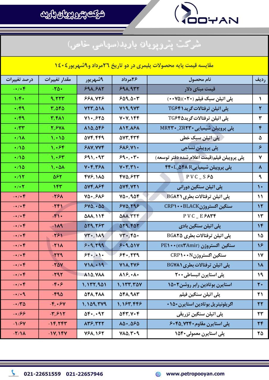 قیمت پایه محصولات پتروشیمی تا 15 شهریور 1404 + دانلود