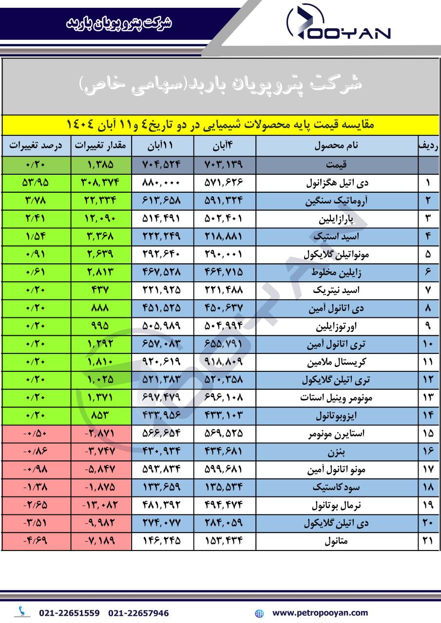 قیمت پایه محصولات پتروشیمی تا 18 آبان 1404 + دانلود