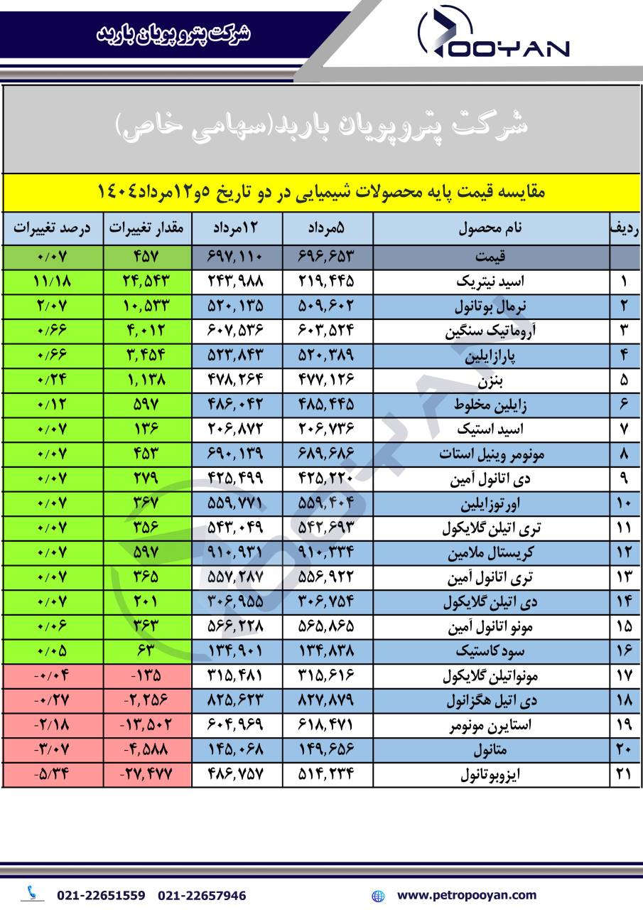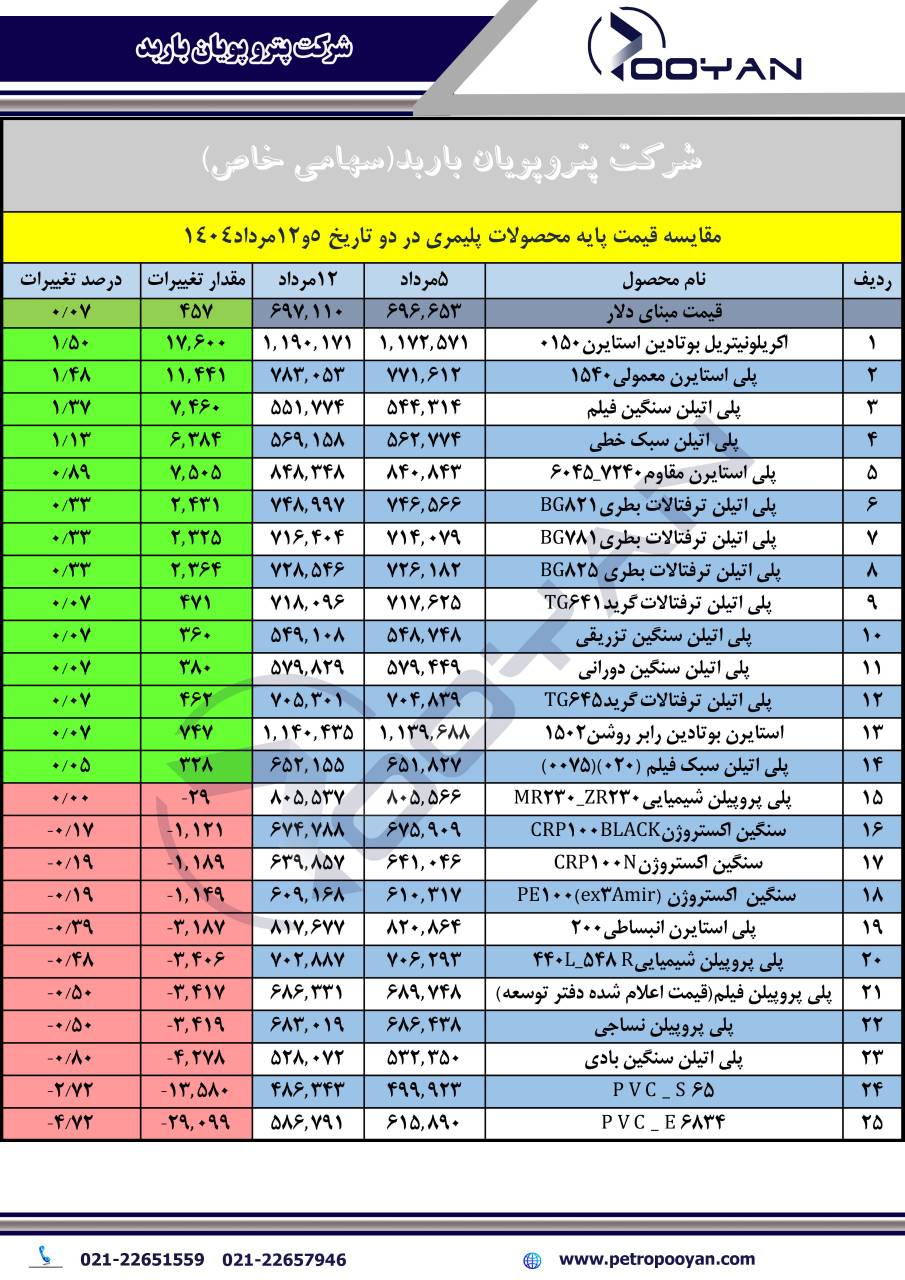 قیمت پایه محصولات پتروشیمی تا 19 مرداد 1404 + دانلود