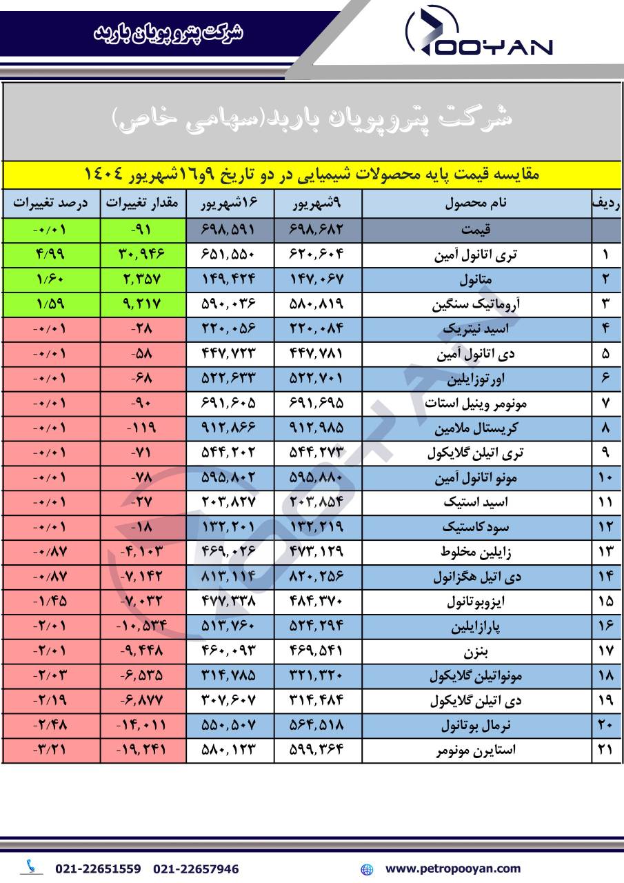 قیمت پایه محصولات پتروشیمی تا 23 شهریور 1404 + دانلود