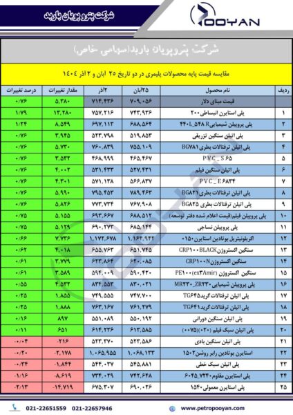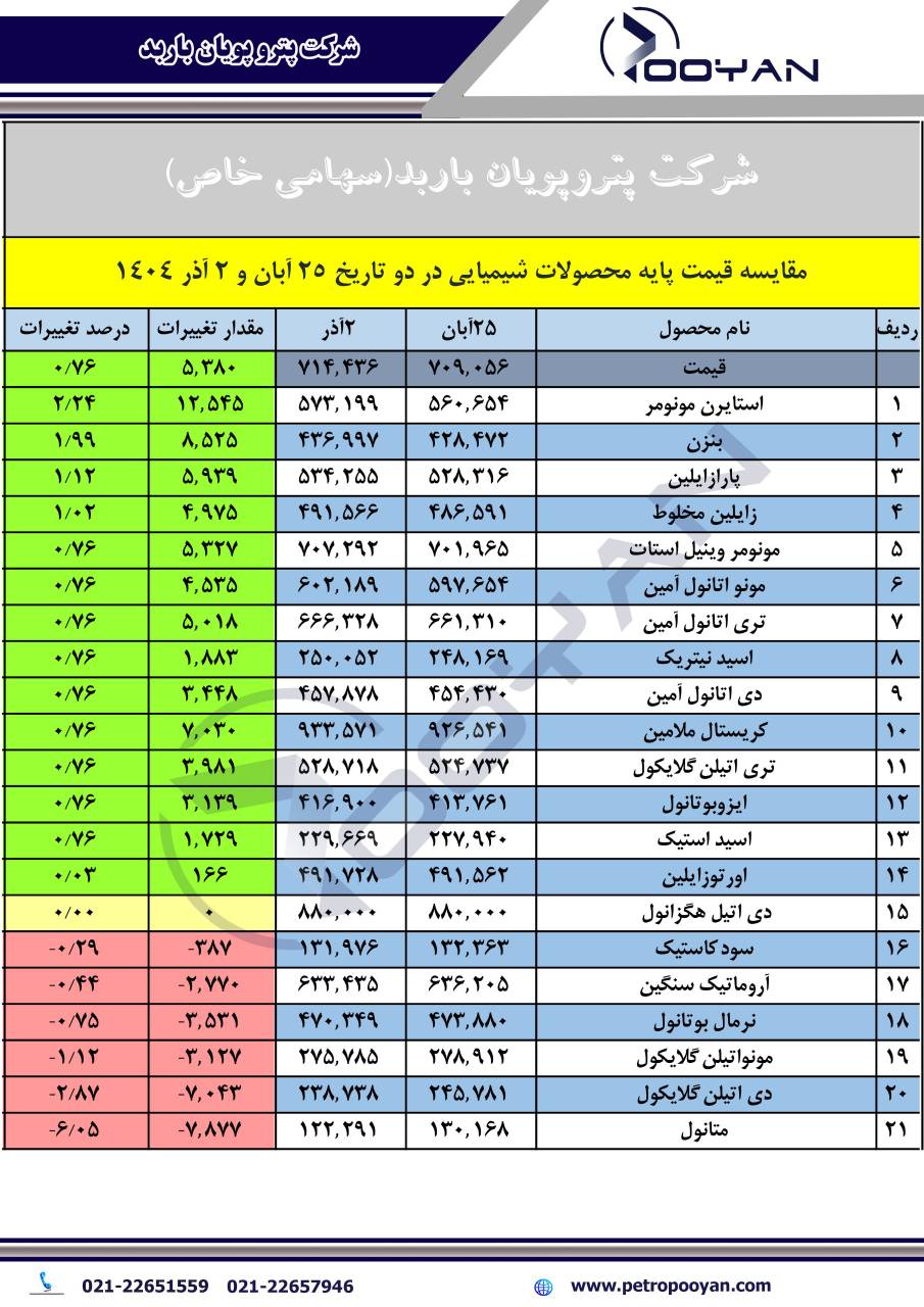 قیمت پایه محصولات پتروشیمی تا 9 آذر 1404 + دانلود