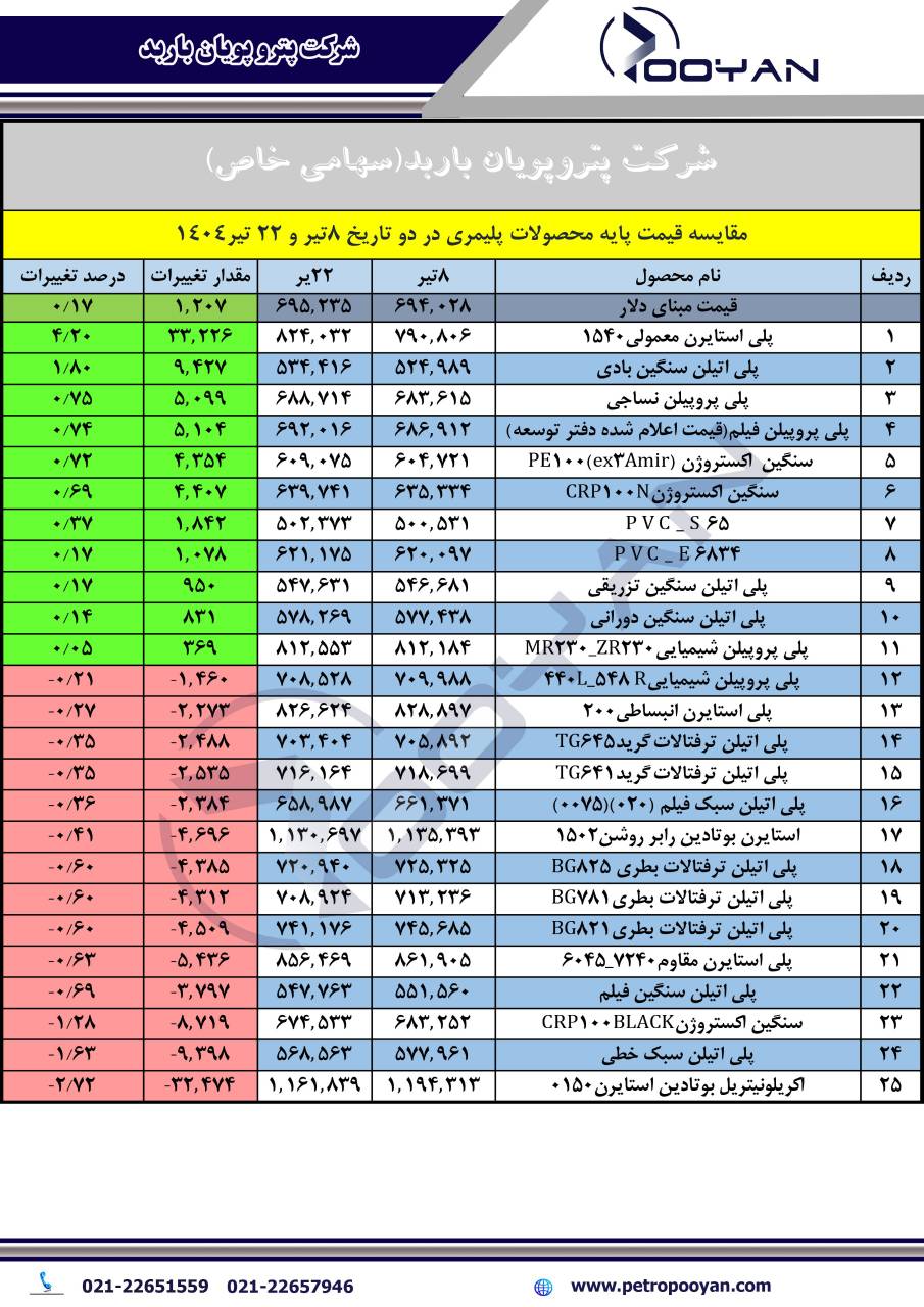 قیمت پایه محصولات پتروشیمی تا 29 تیر 1404 + دانلود