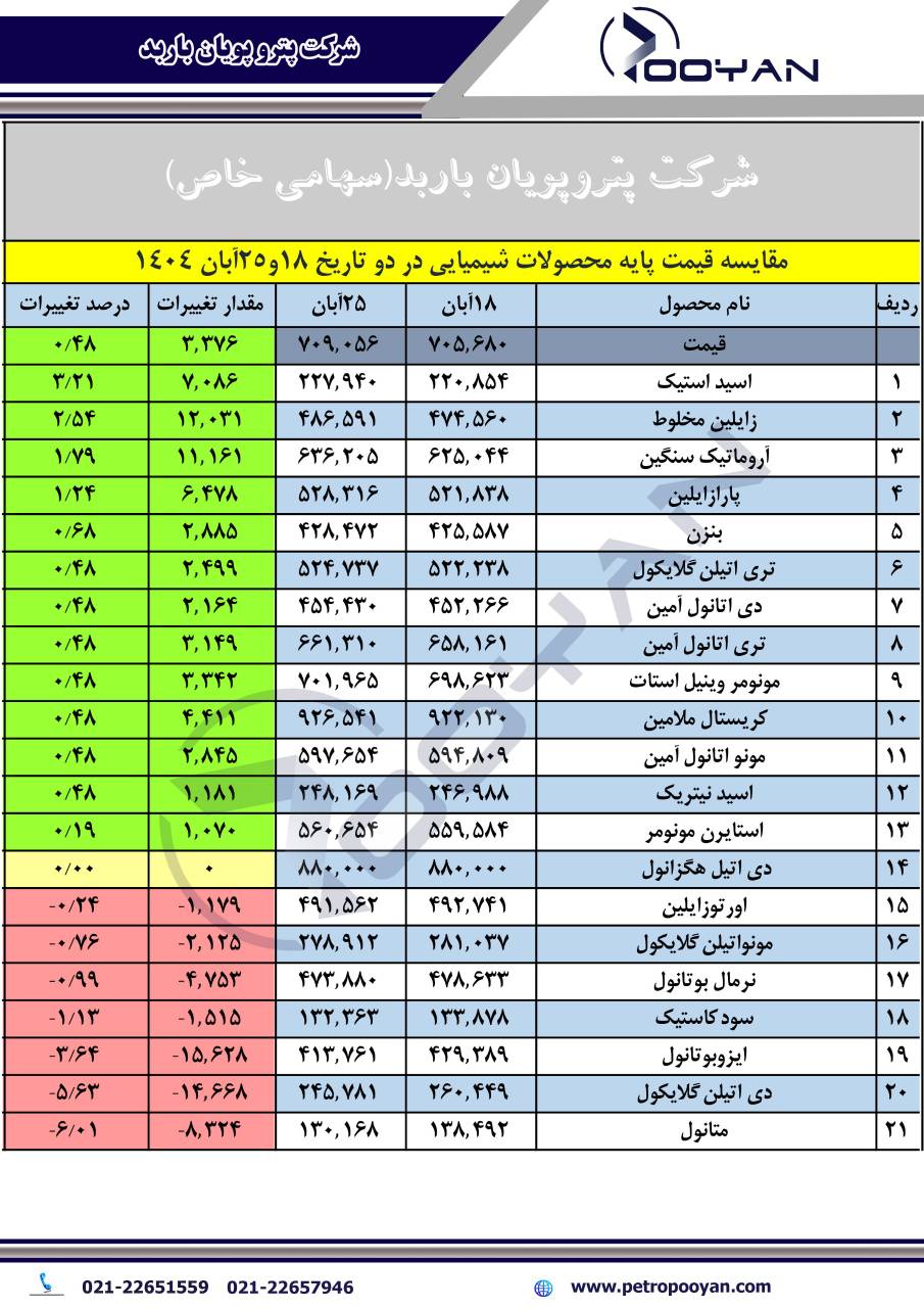 قیمت پایه محصولات پتروشیمی تا 2 آذر 1404 + دانلود