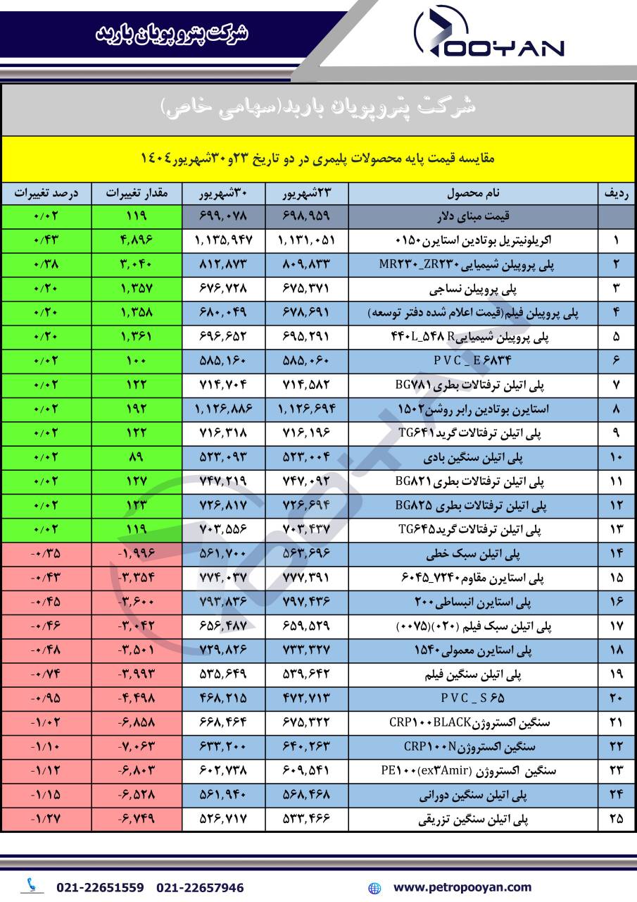 قیمت پایه محصولات پتروشیمی تا 6مهر 1404 + دانلود