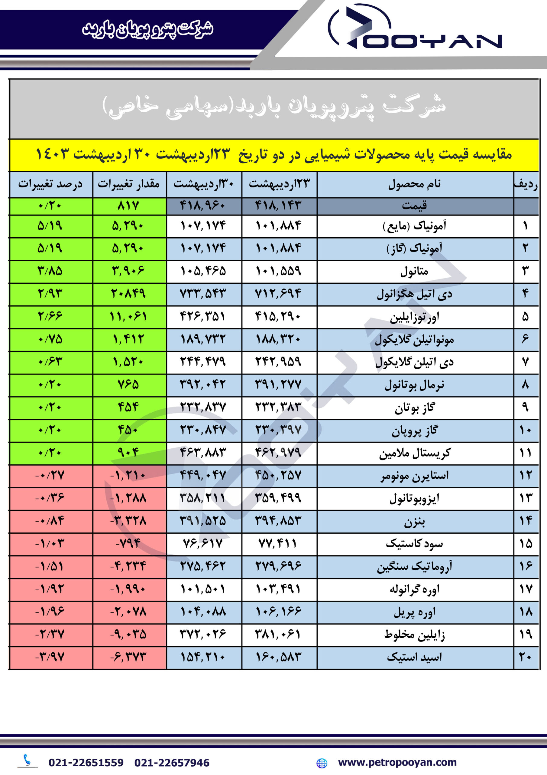 قیمت پایه محصولات پتروشیمی تا 6 خرداد 1403 + دانلود