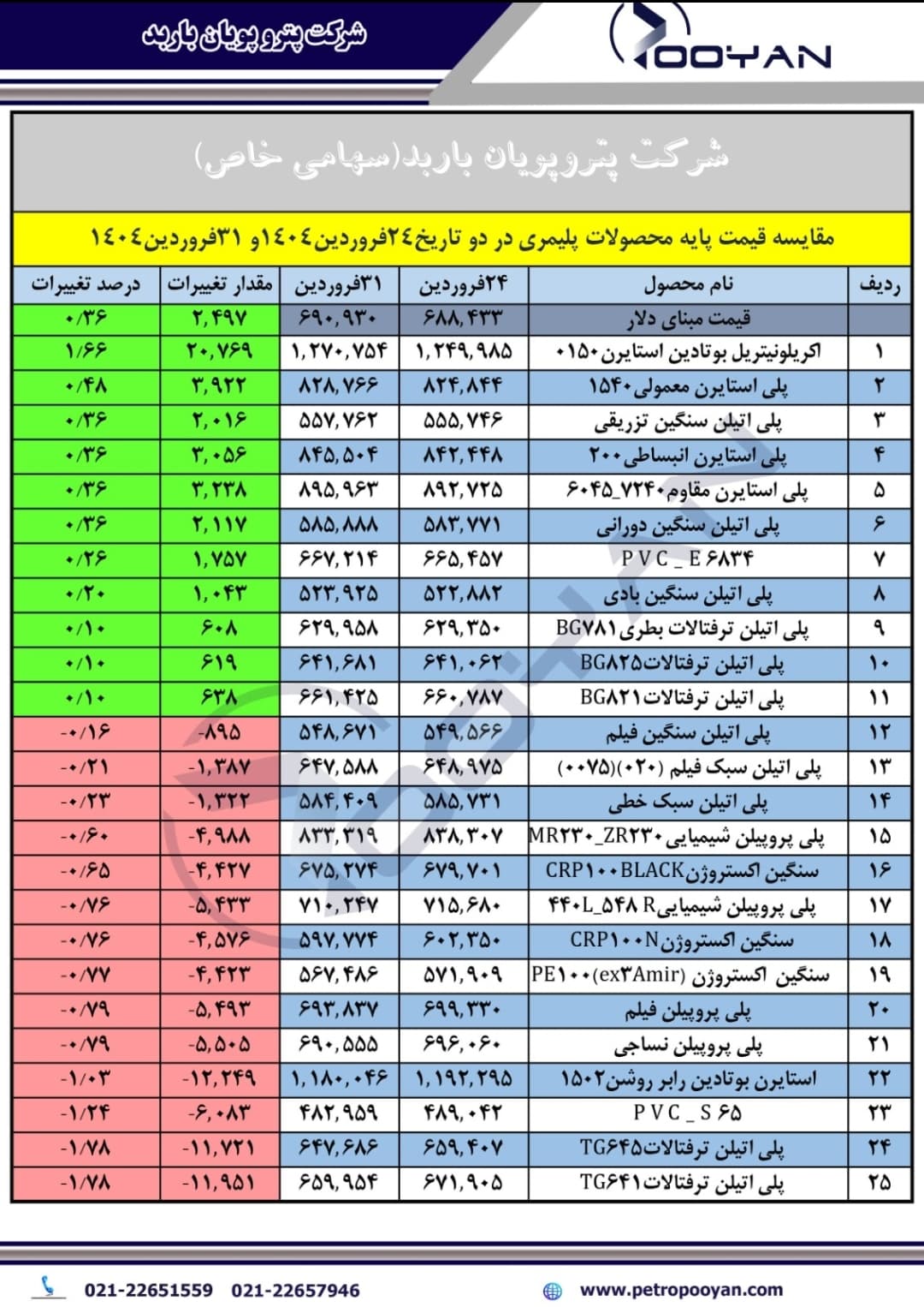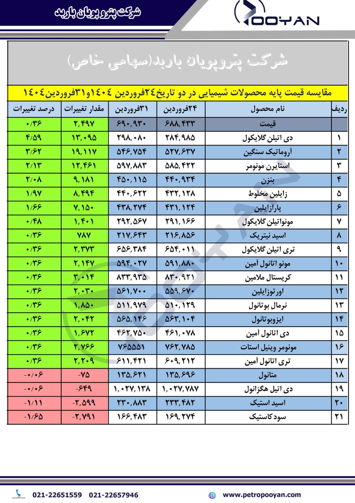 قیمت پایه محصولات پتروشیمی تا 7 اردیبهشت 1404 + دانلود