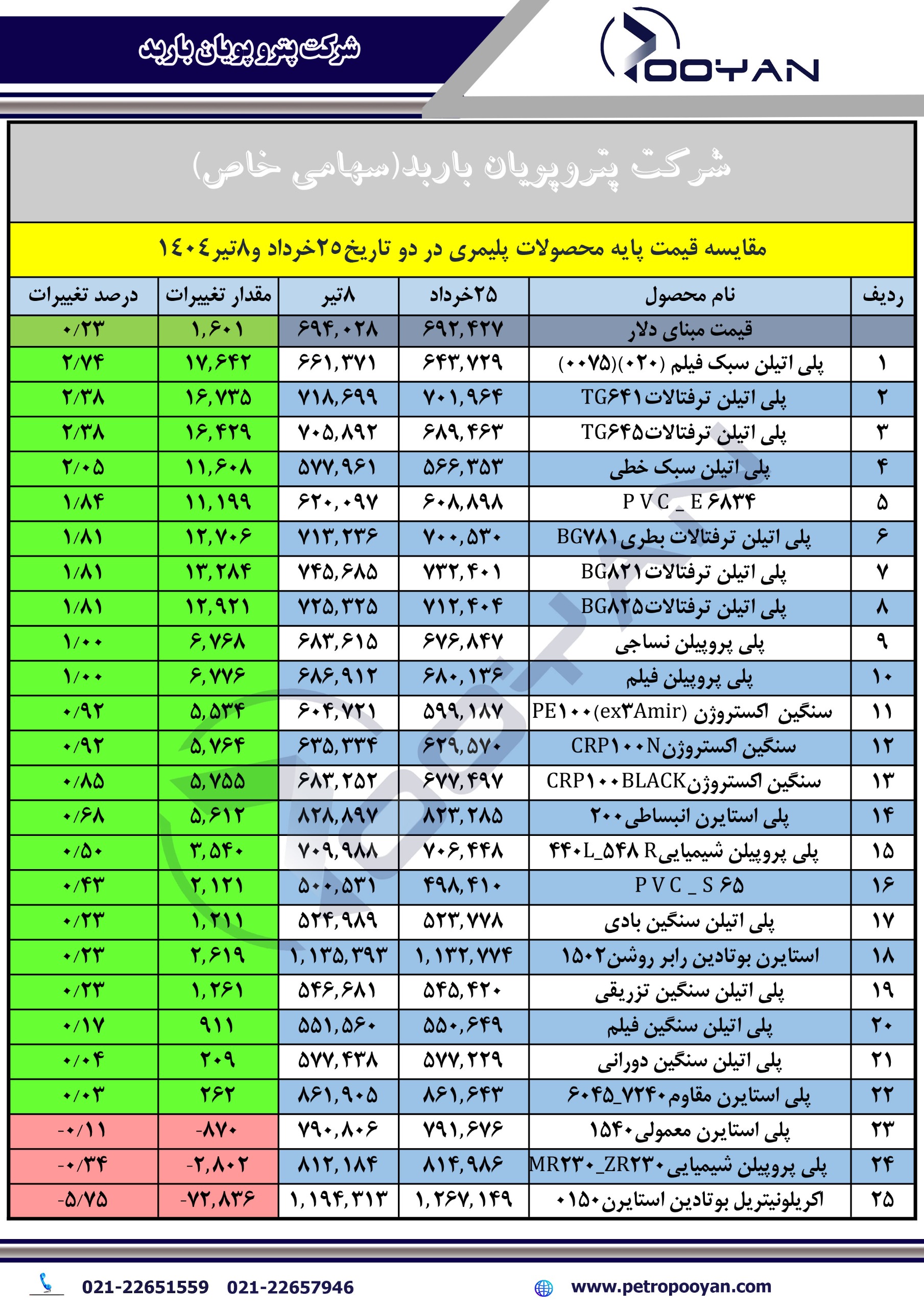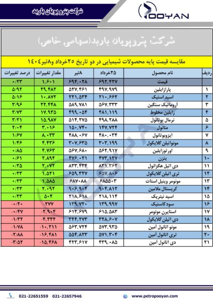 قیمت پایه محصولات پتروشیمی تا 22 تیر 1404 + دانلود