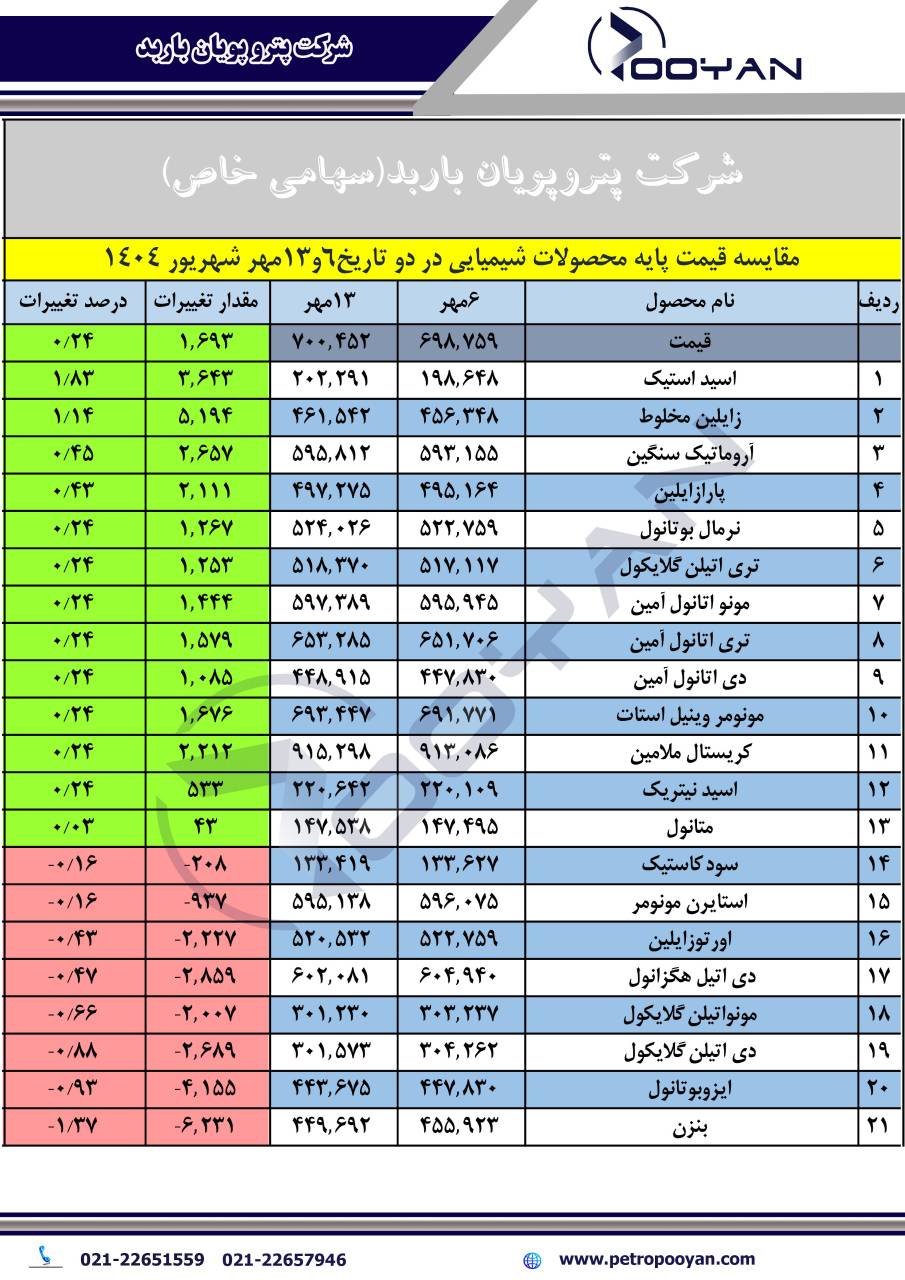 قیمت پایه محصولات پتروشیمی تا 20 مهر 1404 + دانلود