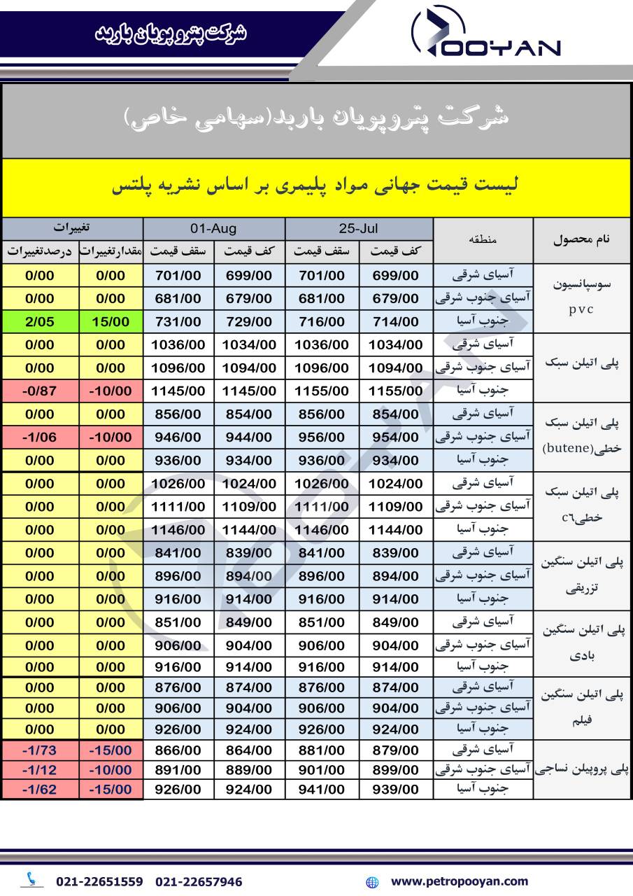 تغییرات قیمت جهانی محصولات پتروشیمی تا 8 آگوست 2025 + دانلود