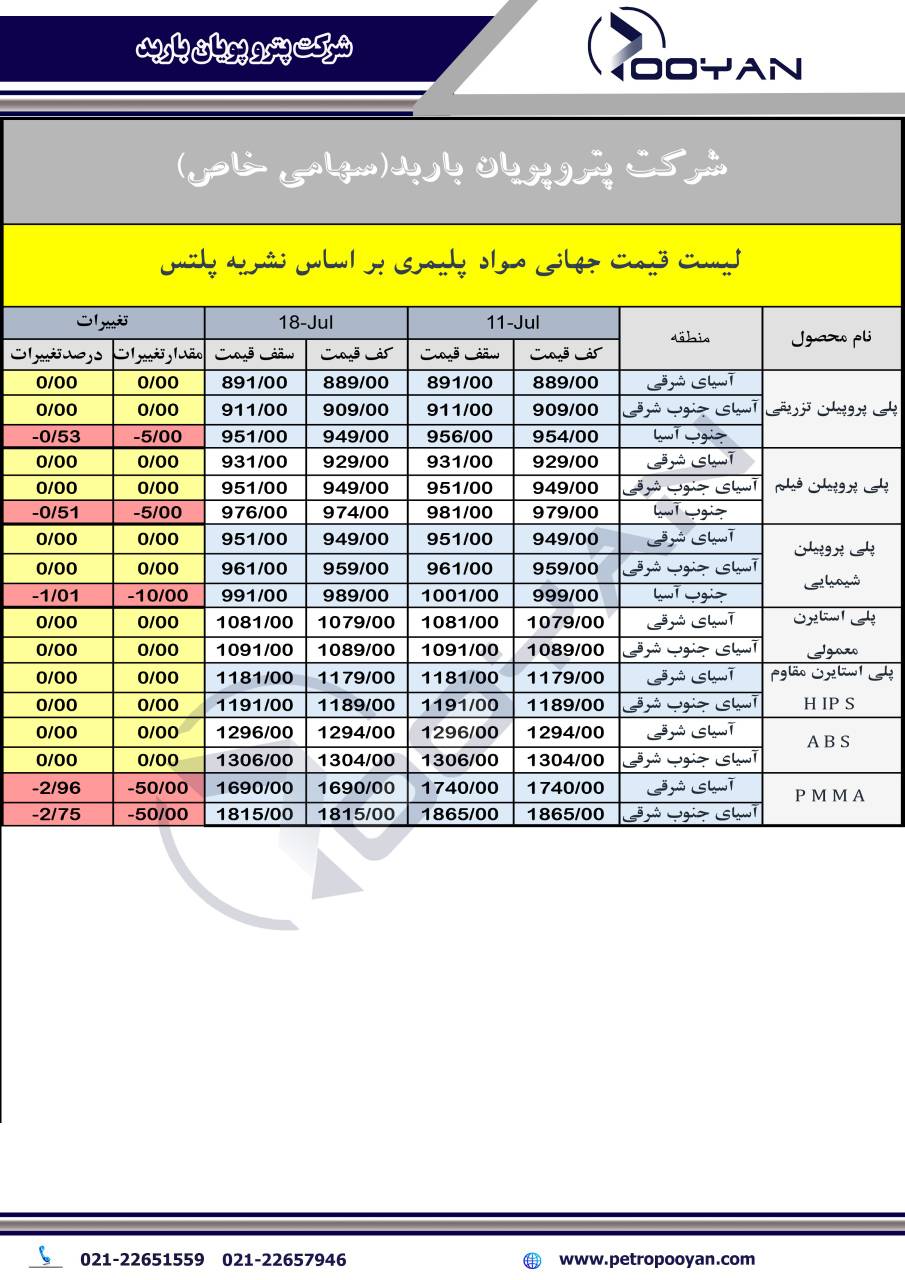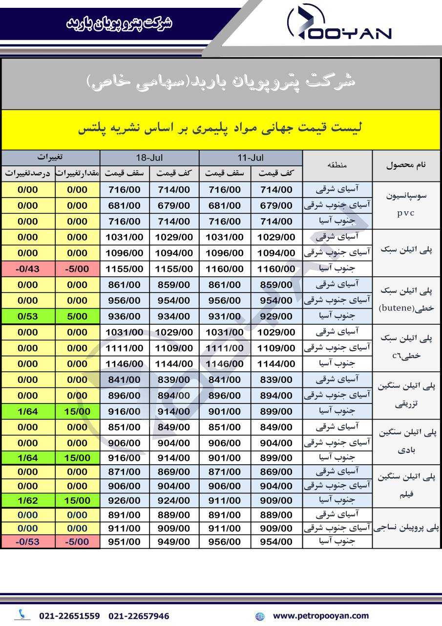 تغییرات قیمت جهانی محصولات پتروشیمی تا 25 ژوئیه 2025 + دانلود